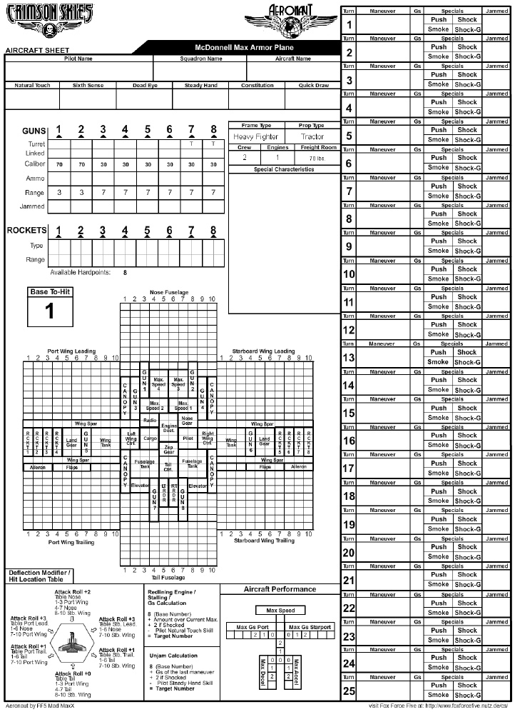 AERONAUT is an unoffical custom aircraft design and editing tool for the out-of-print CRIMSON SKIES boardgame by created FASA.